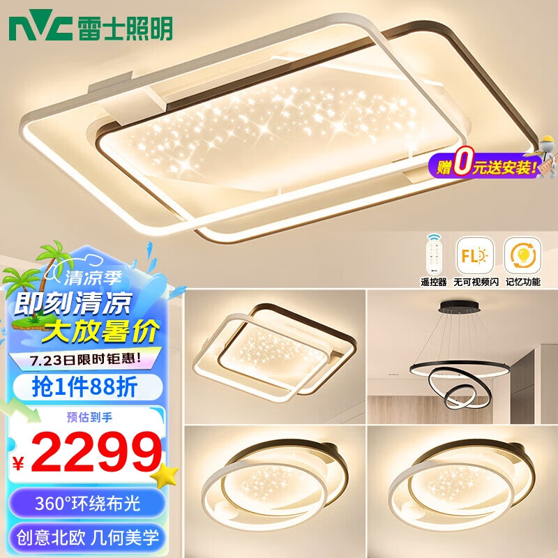 雷士(NVC)客厅套餐后现代简约LED吸顶灯 北欧创意星空氛围星光灯-星雨价格:2613.00元!
