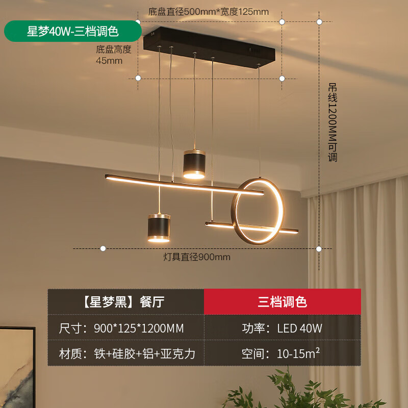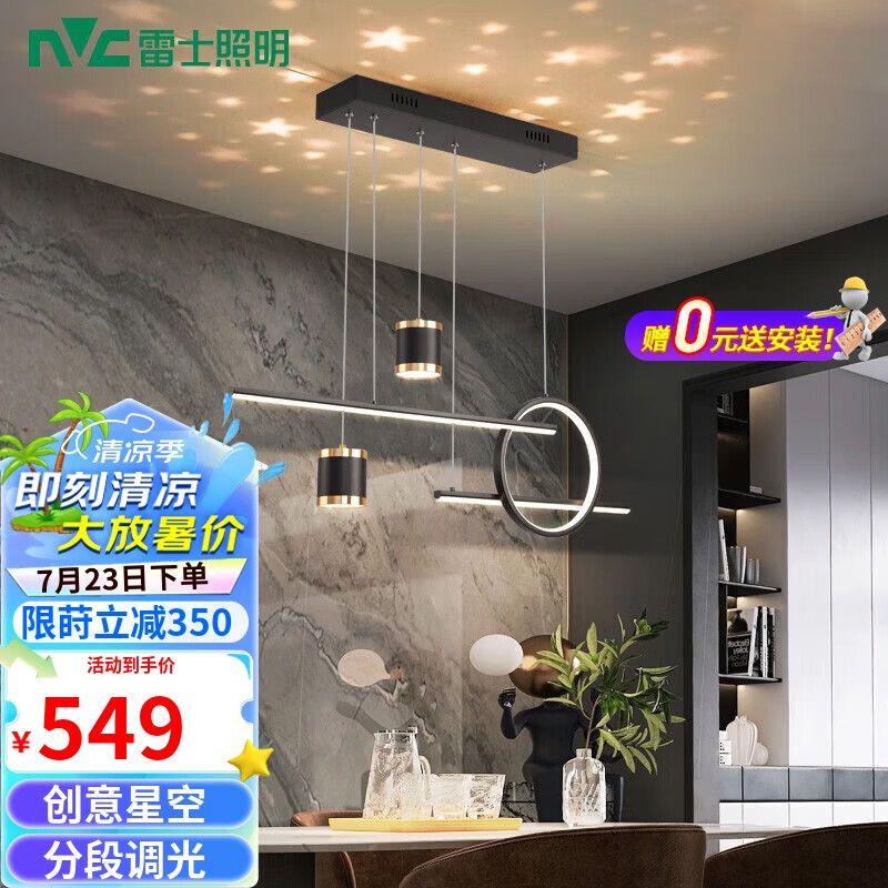 雷士(NVC)餐厅吊灯LED现代简约北欧轻奢黑金餐桌带筒灯长条WHDD40D/G-01价格:899.00元!