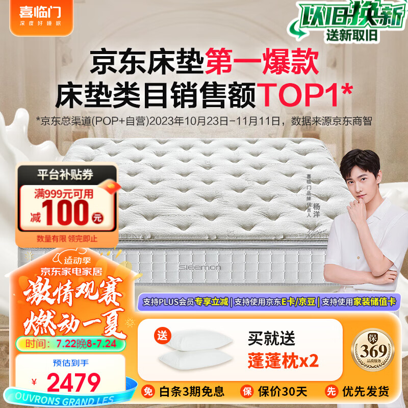 喜临门床垫 2CM乳胶黄麻独立袋装弹簧床垫软硬席梦思 白骑士plus1.8x2米价格:2579.00元!