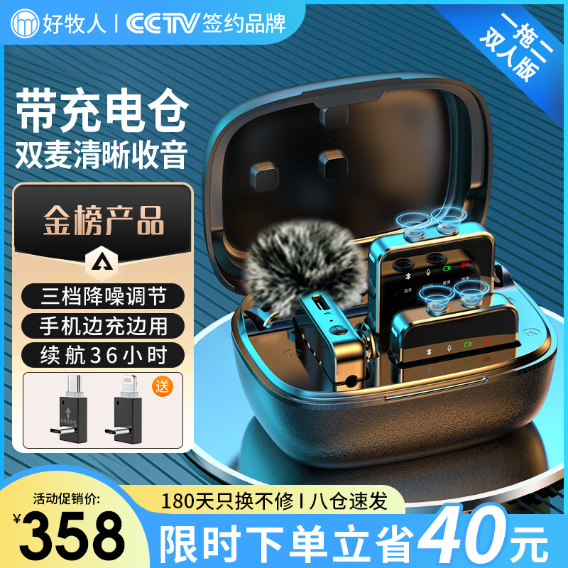 好牧人无线领夹麦克风直播收音麦主播专用录音设备声卡户外降噪抖音K歌拍视频收声器小蜜蜂一拖二话筒价格:398.00元!