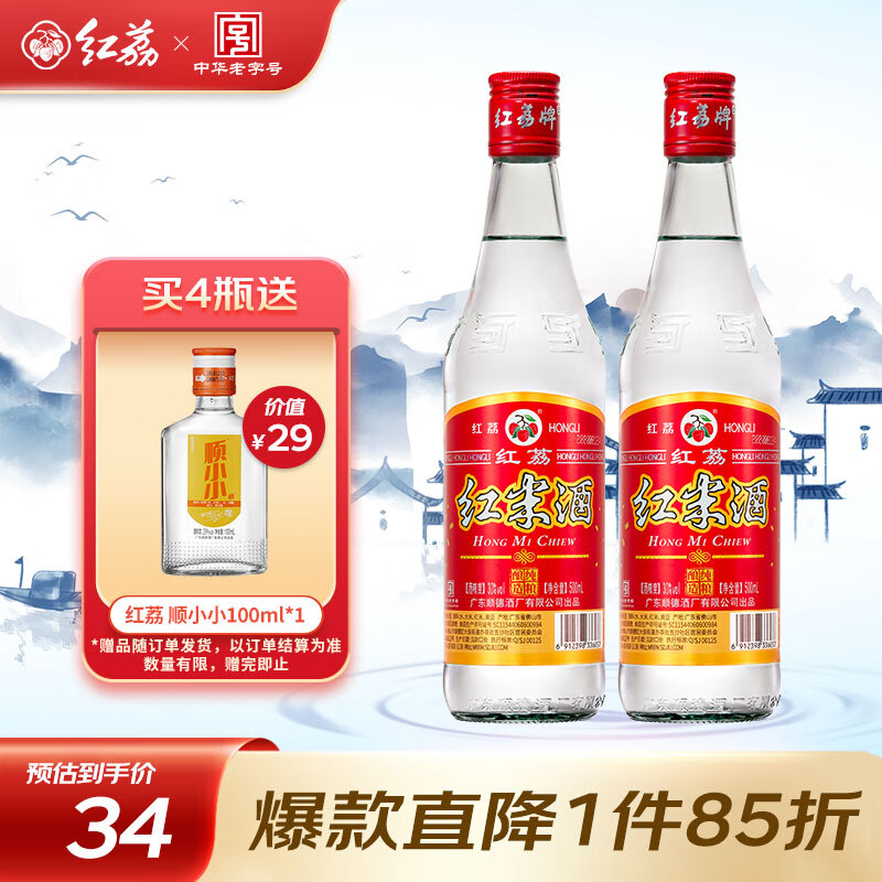 红荔牌 米香型白酒 30度(出口装)500ml*2 红荔红米酒广东米酒口粮酒泡酒价格:40.00元!