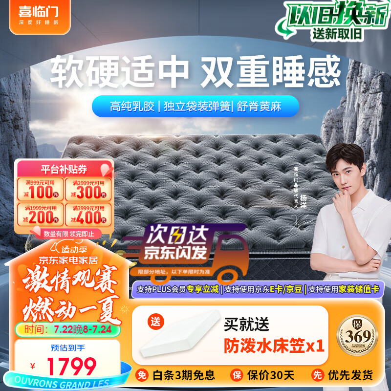 喜临门床垫 进口高纯乳胶 独立弹簧席梦思 黄麻垫 金星knight 1.8x2米价格:1999.00元!