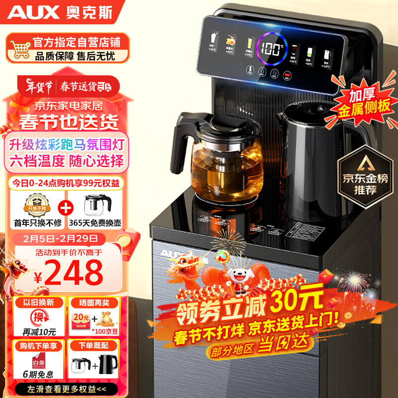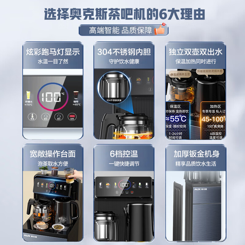 奥克斯(AUX)茶吧机家用立式彩屏实时显温 多档控温一键直达 下置式饮水机24H保温 智能遥控温热款YCB-76价格:278.00元!