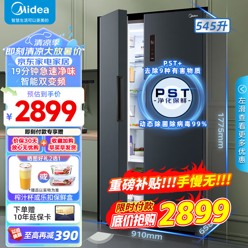 美的(Midea)冰箱9分钟急速净味冰箱545升对开门双变频一级能效智能家电除菌超薄家用电冰箱 BCD-545WKPZM(E)价格:2899.00元!