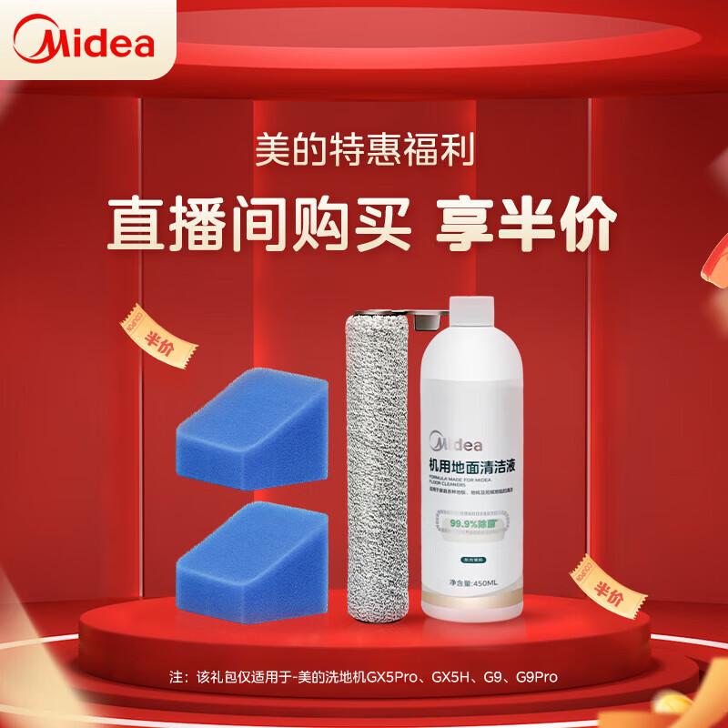 美的配件-清洁礼盒套装(1个滚刷+2个海绵+1瓶清洁液)适用于GX5Pro、GX5H、G9、G9Pro价格:129.00元!