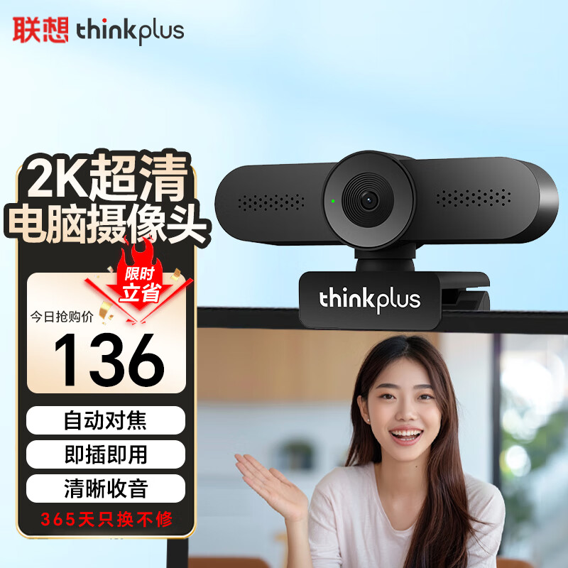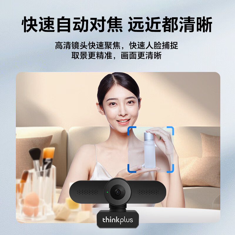 联想thinkplus电脑直播摄像头2K高清带麦克风电脑会议摄像头自动对焦免驱视频会议直播带货摄像头WL24A价格:179.00元!