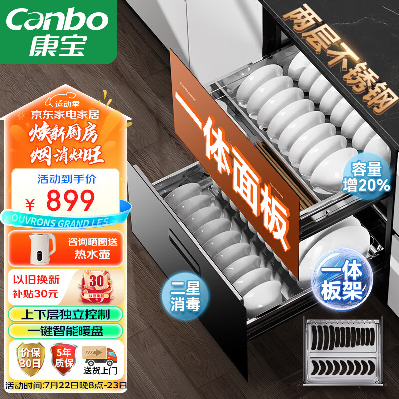 康宝(Canbo)消毒柜 内镶 嵌入式 家用 消毒碗柜 大容量 二高温家庭餐具碗筷婴儿奶瓶 不锈钢 XDZ100-EF122价格:899.00元!