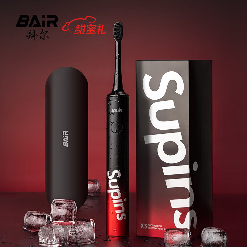 拜尔X3 电动牙刷成人充电式智能声波情侣款套装全自动牙刷男士女学生党男 送女朋友 酷爽黑 联名款价格:178.00元!