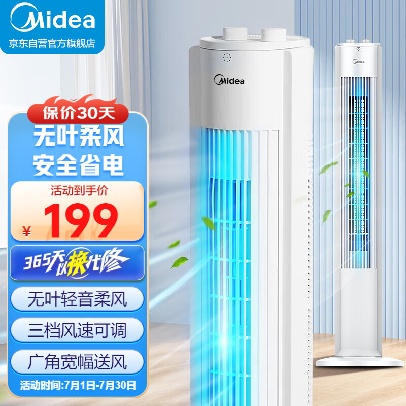 美的(Midea) 电风扇 塔扇家用立式遥控轻音低噪无叶风扇卧室客厅空气循环风扇定时预约电扇宿舍节能风扇 ZAH09MS【24年上市 机械外旋无叶塔扇】 塔扇价格:299.00元!