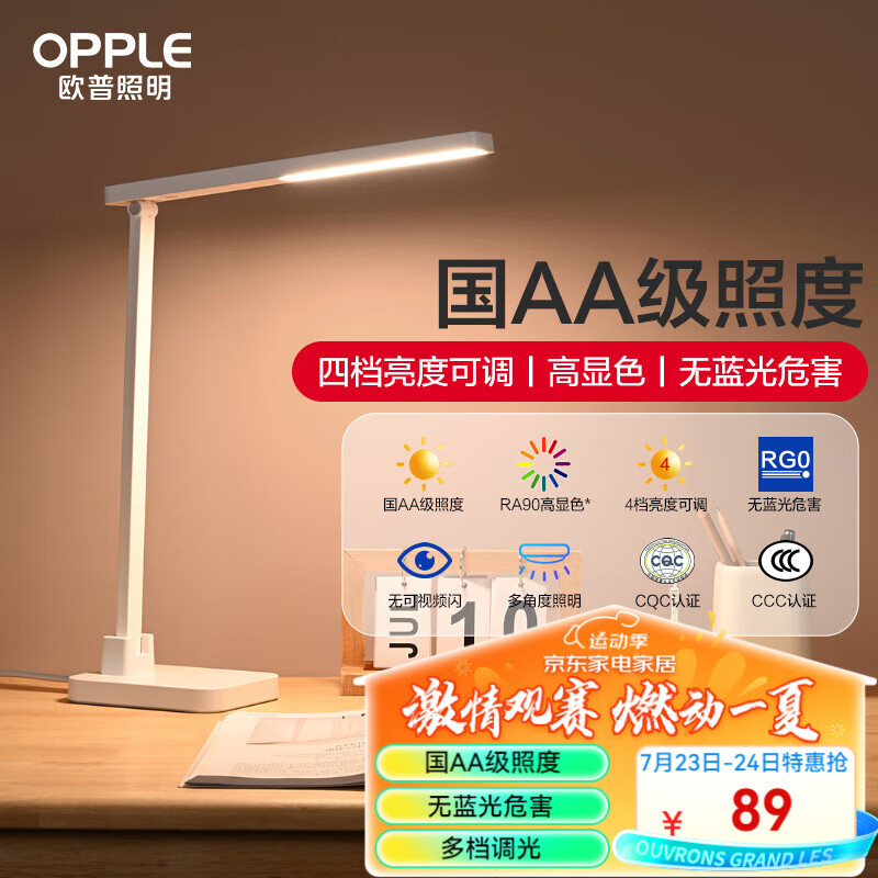 欧普(OPPLE)LED台灯学习护眼灯国AA级床头灯卧室宿舍阅读 四档调光 多角度价格:89.00元!