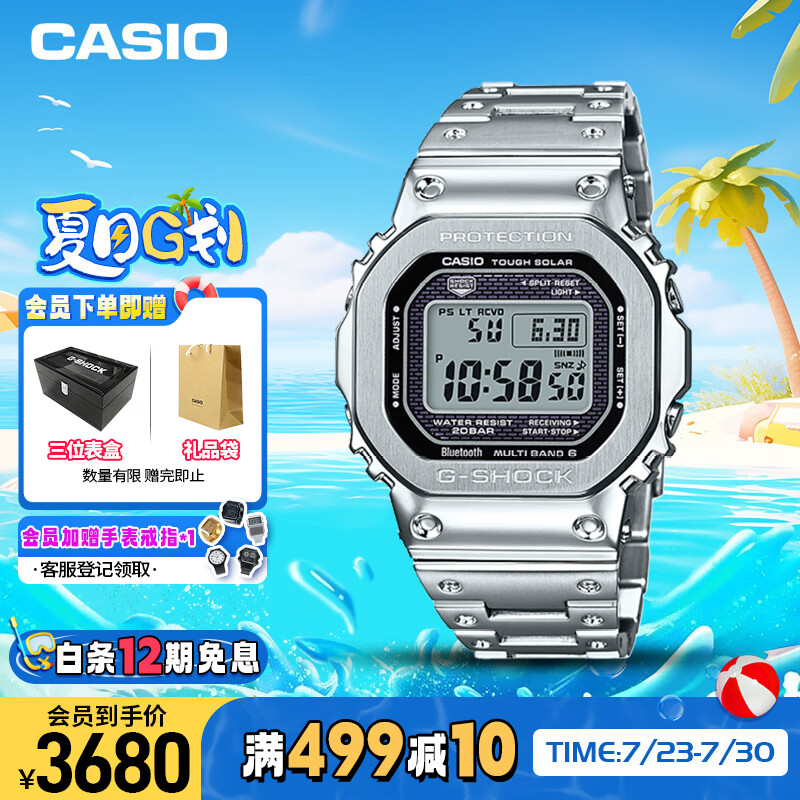 卡西欧(CASIO)手表男G-SHOCK经典小方块小银块电子表七夕送男友GMW-B5000D-1PRT价格:3690.00元!