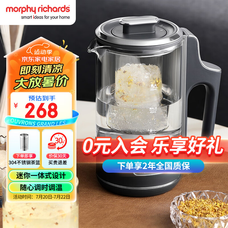 摩飞电器(Morphyrichards)养生壶 便携迷你煮茶器 烧水壶养生杯 小型办公室家用多功能煮茶壶一体式热水壶0.6L MR6086 灰价格:268.00元!