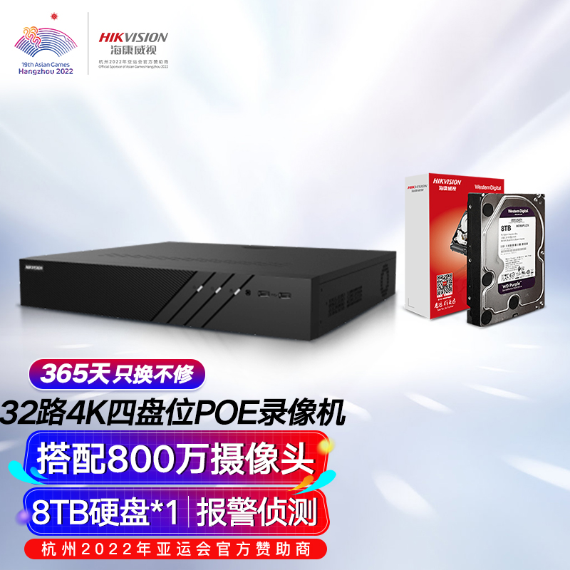 HIKVISION海康威视网络主机硬盘录像机监控32路4盘位4K超高清16路POE网线供电带8T硬盘DS-7932N-R4/16P价格:5045.00元!