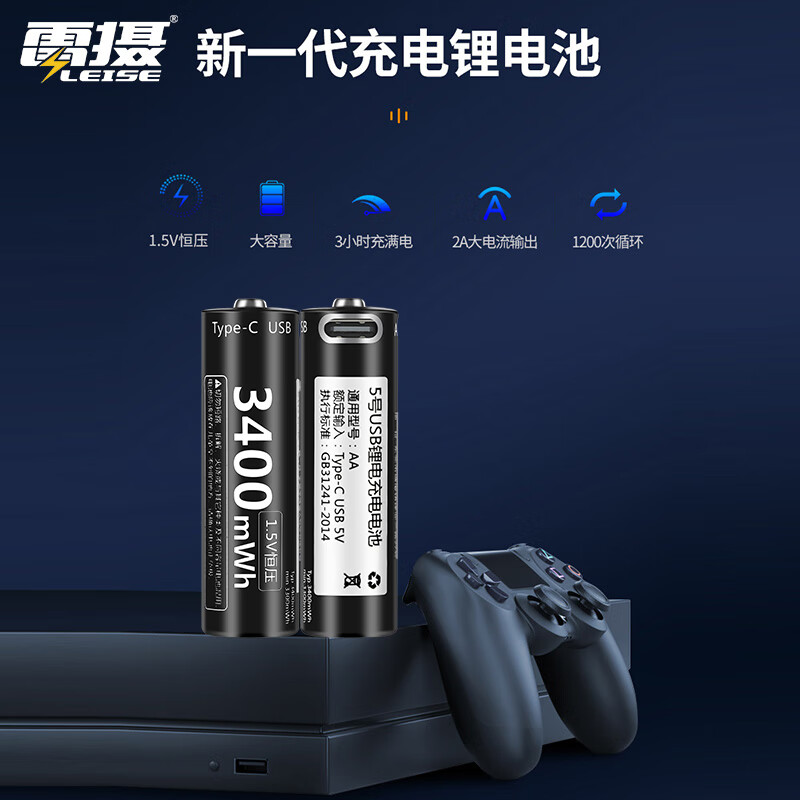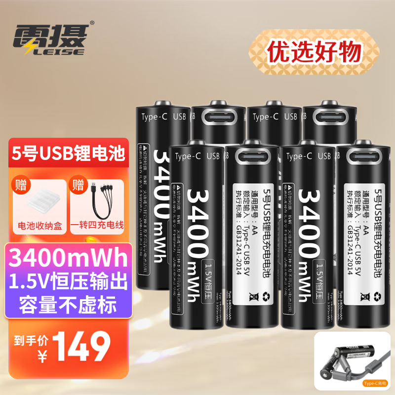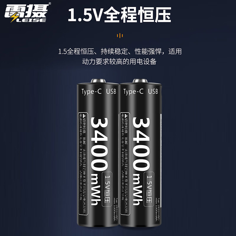 雷摄(LEISE)5号/ 五号/USB-Type-C充电锂电池3400mWh( 8节)盒装 1.5V恒压大容量快充 适用:话筒玩具等价格:149.00元!