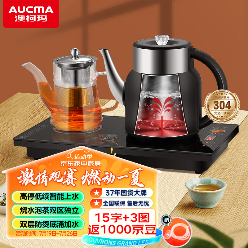 澳柯玛(AUCMA)自动旋转上水壶/自动续水恒温电热水壶/保温304不锈钢一体烧水壶/电茶壶/茶具电茶炉J83送礼长辈价格:249.00元!
