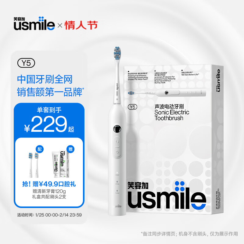 usmile 笑容加电动牙刷 男士声波自动牙刷 情侣礼物 亮白能量刷送男友 Y5原力白价格:259.00元!