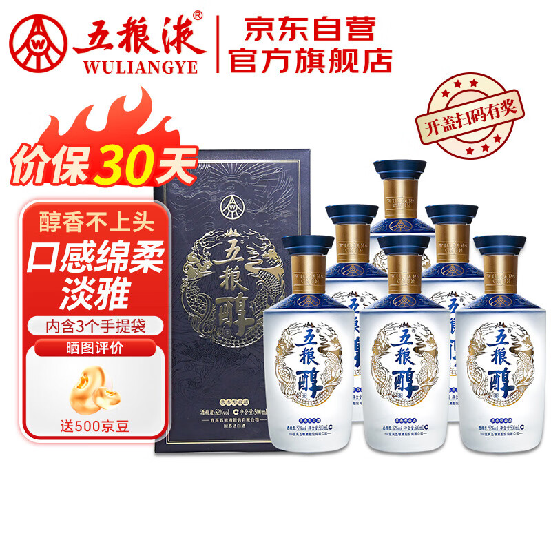 五粮液股份 五粮醇 醇香 浓香型白酒52度500mL*6瓶整箱装送礼袋中秋送礼价格:720.00元!