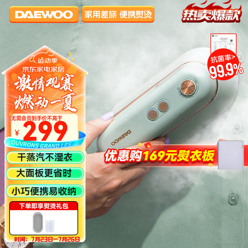 大宇(DAEWOO)挂烫机家用增压蒸汽熨烫机电熨斗 旅游出差便携式熨衣机 手持小型除菌除螨熨斗礼品团购HI-029-LV价格:329.00元!