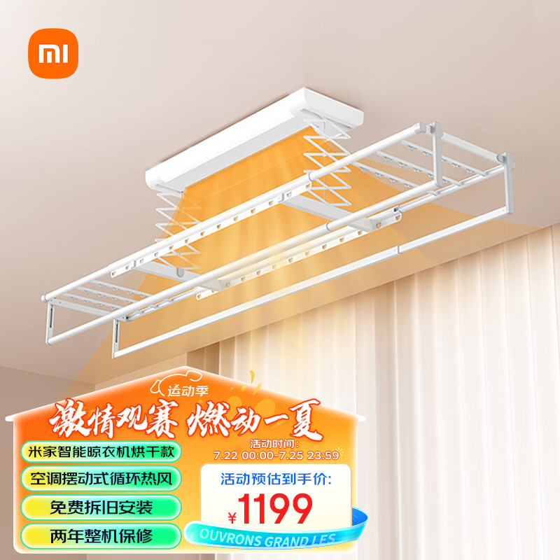 米家智能晾衣机 烘干款 电动晾衣架 阳台伸缩晾衣杆 小米价格:1199.00元!