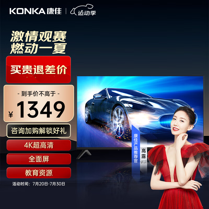 康佳电视 Y50 50英寸 4K超高清屏 一键投屏 AI人工智能语音声控 教育液晶平板电视机价格:1349.00元!
