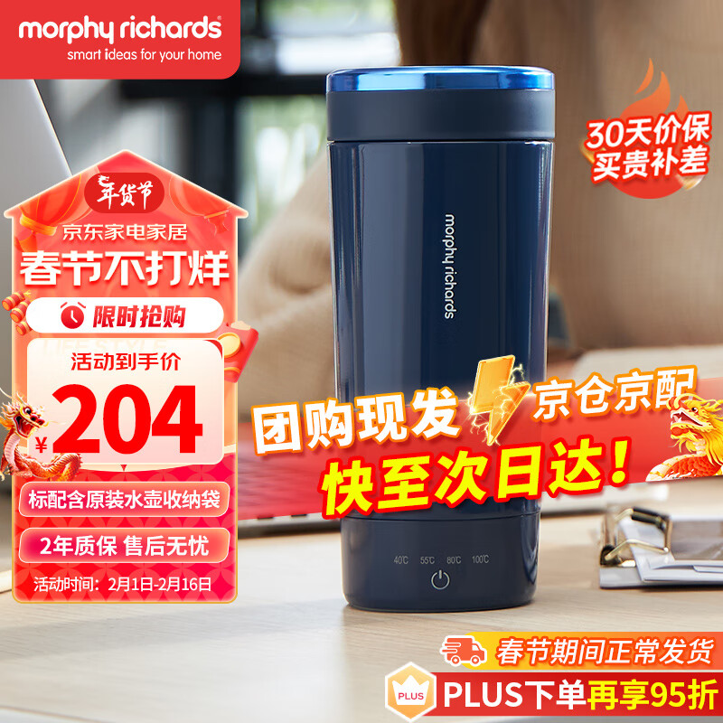 摩飞电器(Morphyrichards)电水壶 烧水壶便携式家用旅行电热水壶 随行冲奶泡茶办公室养生保温杯MR6060蓝价格:204.00元!