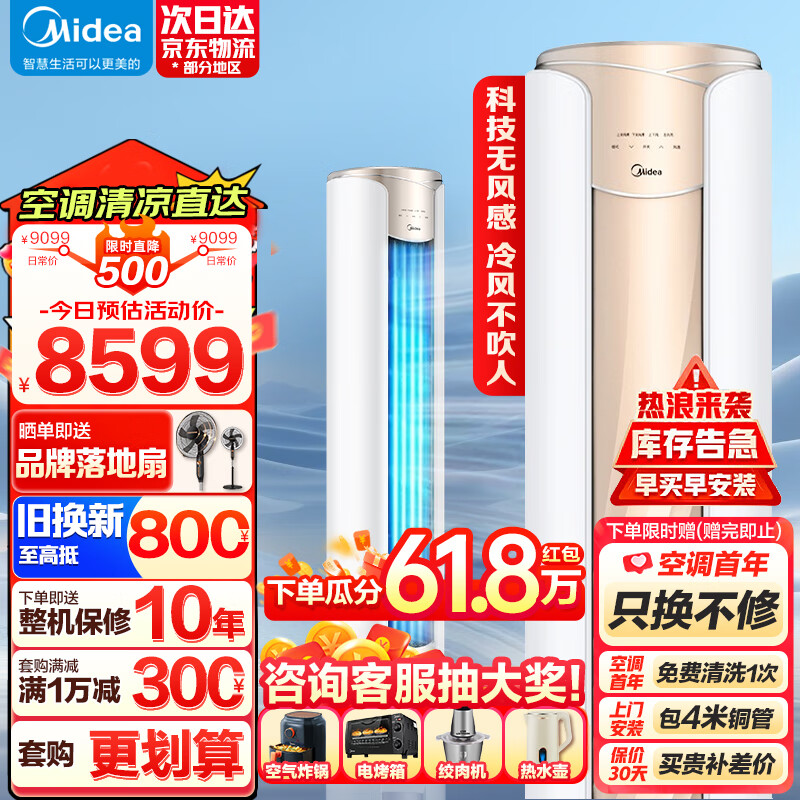 美的(Midea)新一级 纤白 大2匹 变频冷暖无风感 智能家电 家用客厅立式空调柜机 KFR-51LW/N8MWD1价格:8899.00元!