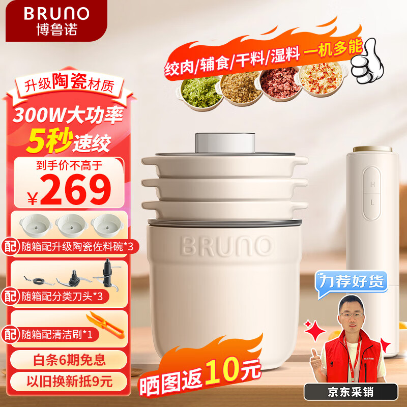 BRUNO绞肉机佐料机家用套娃绞馅机碎肉菜机电动多功能磨辅食料理机粉打蒜【升级陶瓷】豪华款-象牙白价格:269.00元!