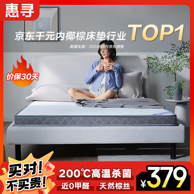 惠寻 京东自有品牌 椰棕床垫偏硬3E无胶水1.5米*1.9米10cm厚价格:409.00元!