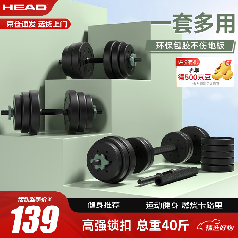 HEAD海德哑铃男女通用家用健身器材杠铃套装组合哑铃可拆卸20kg价格:139.00元!