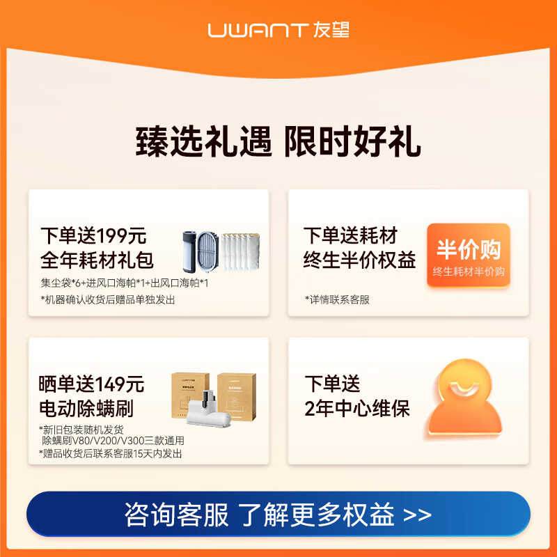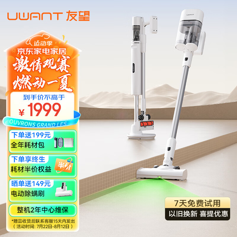 uwant友望吸尘器家用无线手持 巨幕绿光显尘 智能自集尘基站 双尘杯宠物毛发防缠绕 60天免打理尘袋V200价格:1799.00元!