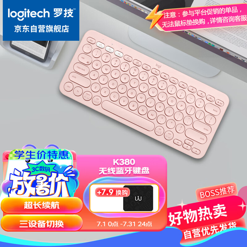 罗技(Logitech)K380 键盘 蓝牙办公键盘 无线键盘 女友 便携超薄键盘 笔记本键盘 茱萸粉价格:149.00元!