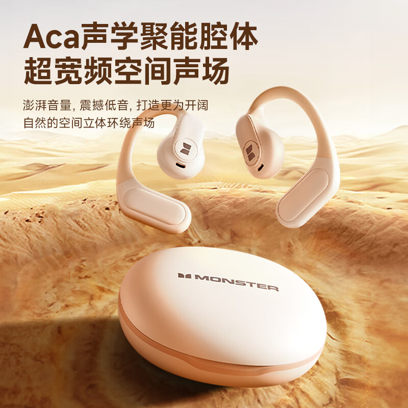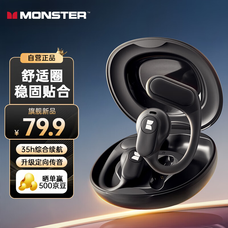 魔声(MONSTER)【新款舒适升级】无线蓝牙耳机 开放式骨传导概念不入耳夹耳运动跑步降噪 适用华为小米 XKO15黑色价格:109.90元!