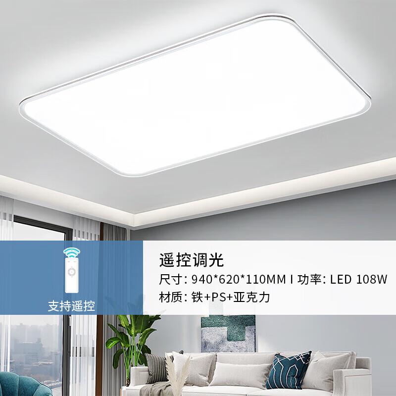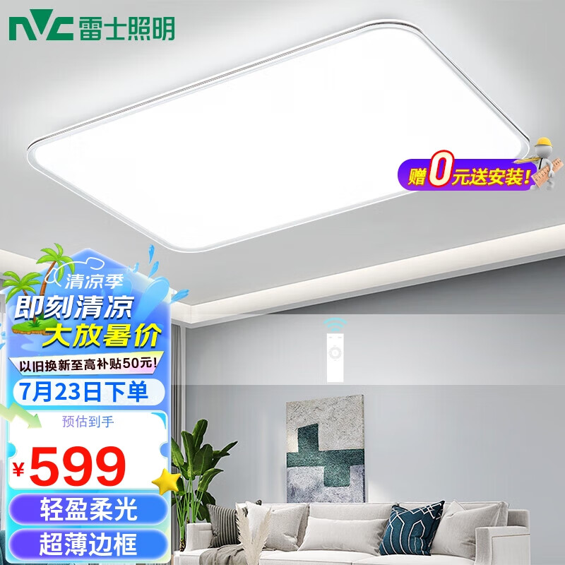 雷士(NVC)客厅大灯吸顶灯无极调光超薄现代简约奶油风led照明灯具白色新月X价格:748.00元!