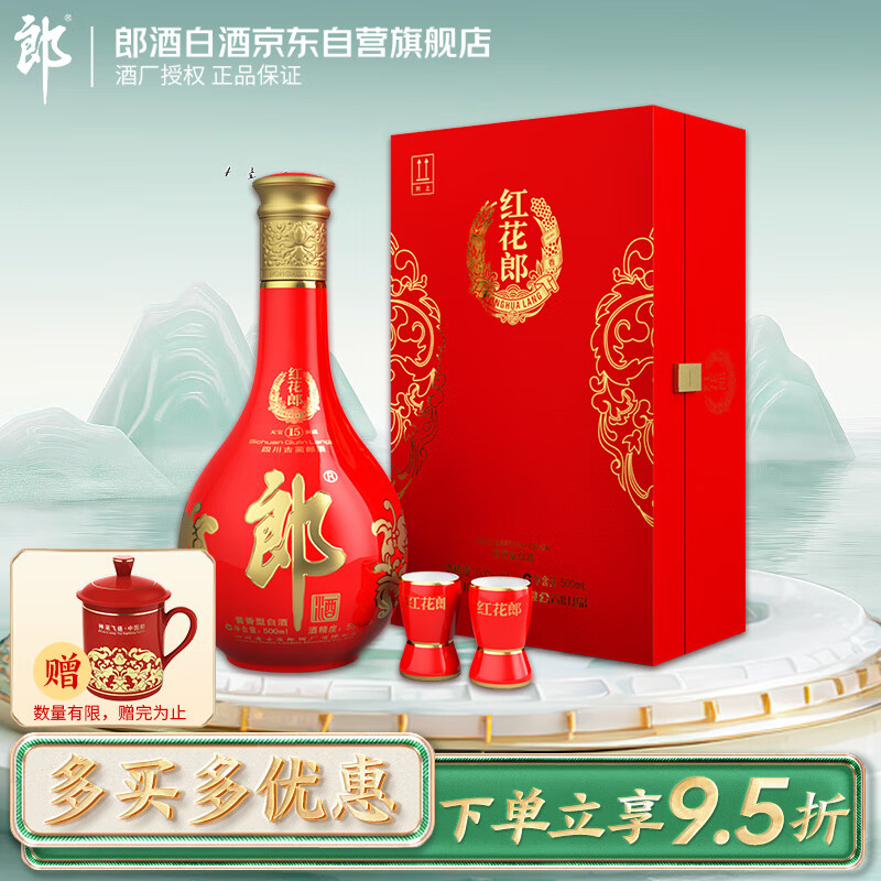 郎酒 红花郎15 酱香型 白酒 53度 500ml*1瓶 礼盒装价格:610.00元!