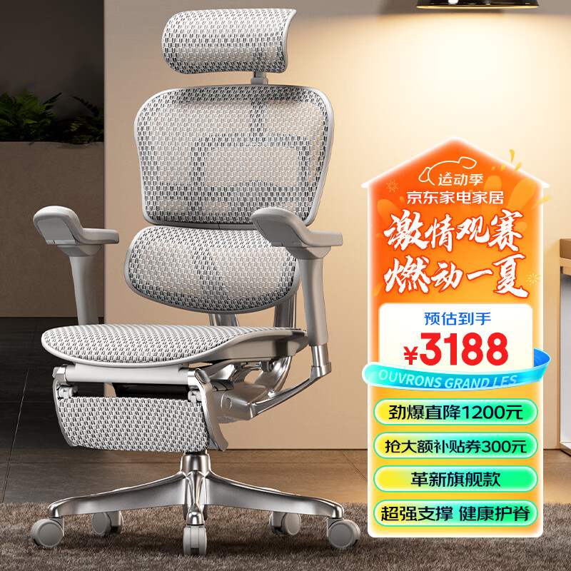 Ergonor保友金豪e2代高端人体工学椅电脑椅办公椅电竞椅子 银白网+躺舒宝价格:4688.00元!