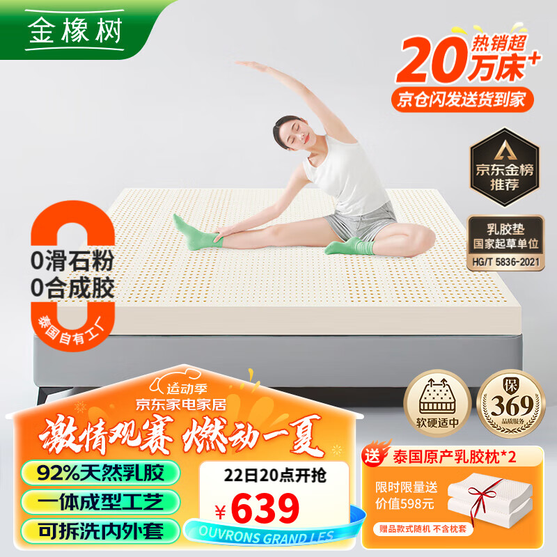 金橡树泰国天然乳胶原液进口床垫单人床垫 1.2米 泰舒 含内外套价格:1139.00元!