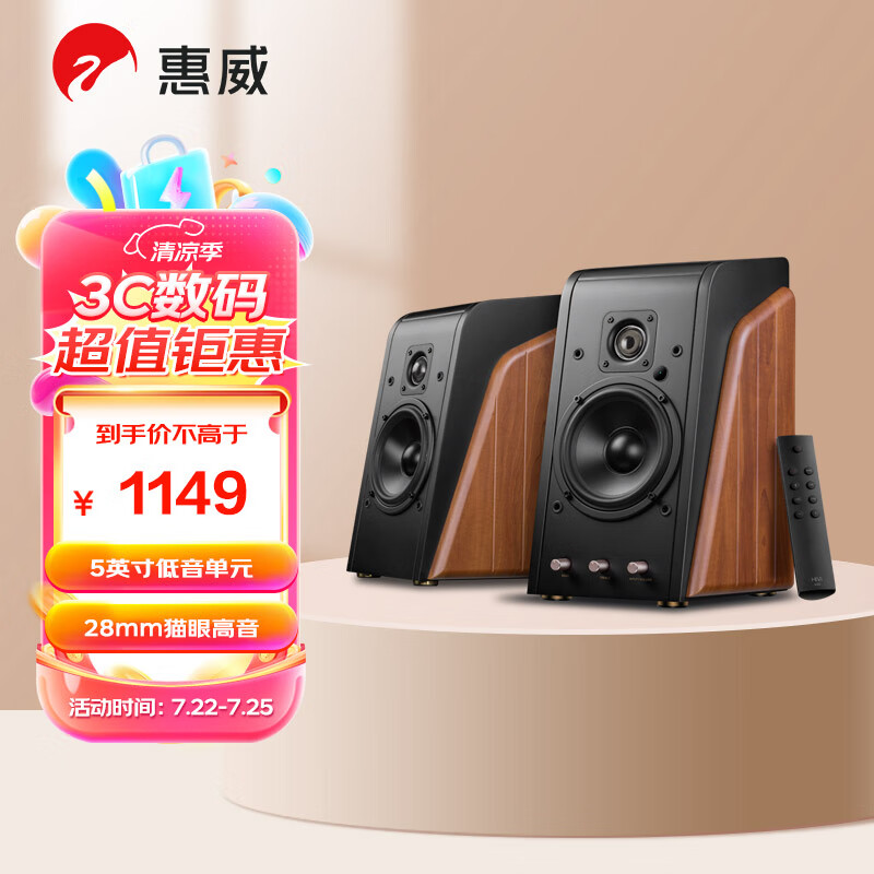 惠威(HiVi) M200 蓝牙音箱HiFi有源音响 2.0声道笔记本台式电脑音箱家用客厅电视音响 原木色价格:1299.00元!