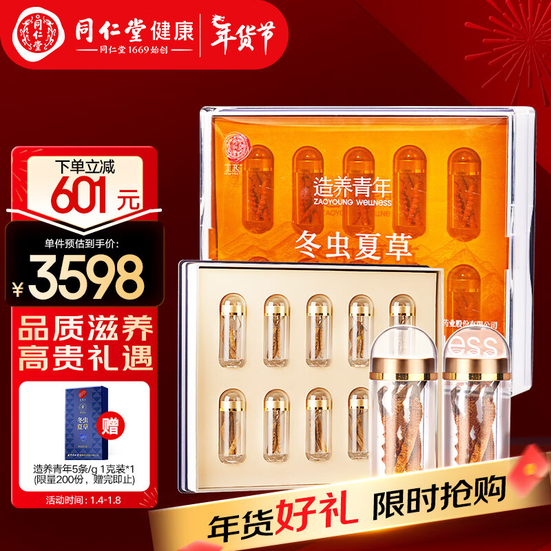 北京同仁堂 造养青年 【年货礼品送长辈】 冬虫夏草 西藏虫草-50/10g 虫草礼盒 滋补品价格:4199.00元!
