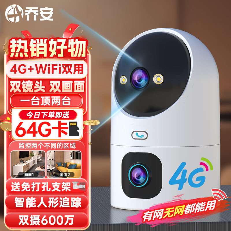乔安摄像头监控无线wifi+4G双用网络高清夜视360度全景云台旋转无死角室内家庭手机远程监控器家用价格:189.00元!
