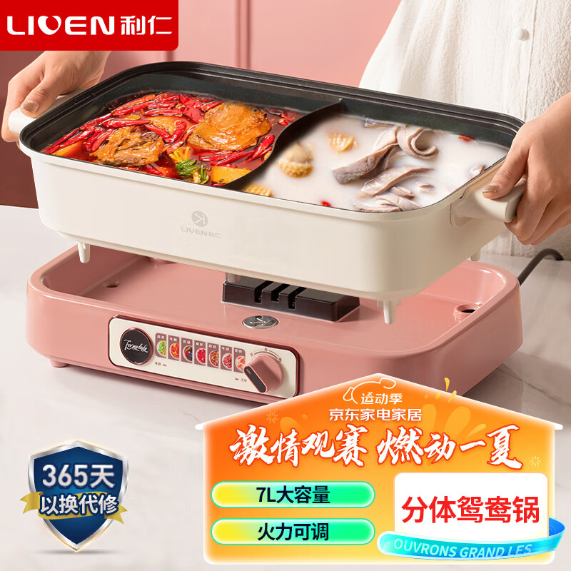 利仁(Liven)鸳鸯锅电火锅专用锅电煮锅电锅多功能锅多用途料理锅分体式家用电热锅火锅锅7升大容量 DHG-700BY价格:219.00元!