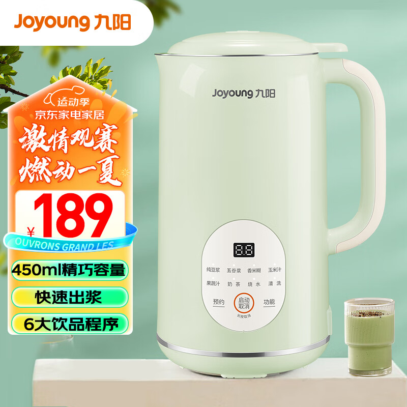 九阳豆浆机450ml精巧容量易收纳 快速出浆细腻研磨1-12H预约多功能料理机破壁机DJ04X-D126价格:189.00元!