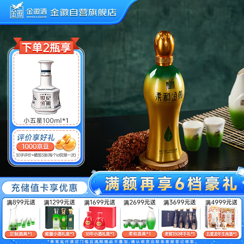 金徽 柔和H9 浓香型白酒 50度 500ml 单瓶装价格:410.00元!