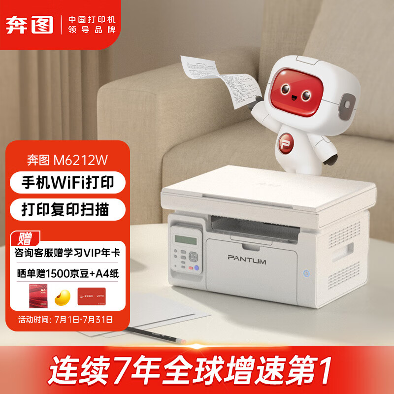 奔图(PANTUM)M6212W激光打印机 家用复印扫描一体机 手机无线 学生作业打印(M6202W系列)价格:799.00元!