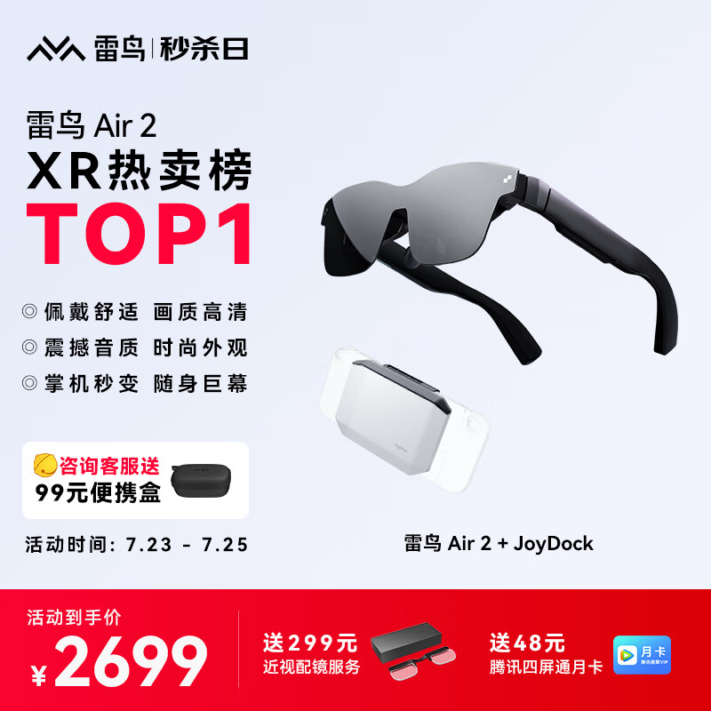 雷鸟Air2 智能AR眼镜 高清巨幕观影眼镜 120Hz高刷 JoyDock掌机巨幕 vision pro平替Switch专属价格:3099.00元!