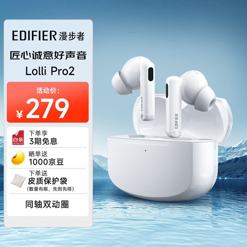 漫步者(EDIFIER)Lolli Pro2 真无线主动降噪蓝牙耳机 金标认证 蓝牙5.3 适用苹果华为小米 白色价格:279.00元!
