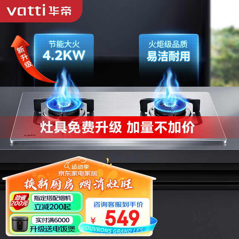 华帝(VATTI)官方燃气灶天然气家用台式嵌入式双灶一级能效4.2kW不锈钢面板煤气灶双灶台灶具JZT-i10039A价格:548.00元!