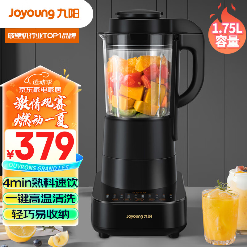 九阳(Joyoung)破壁机 超薄降噪破壁机家用加热豆浆机辅食机榨汁杯多功能1.75L大容量L18-P510价格:379.00元!