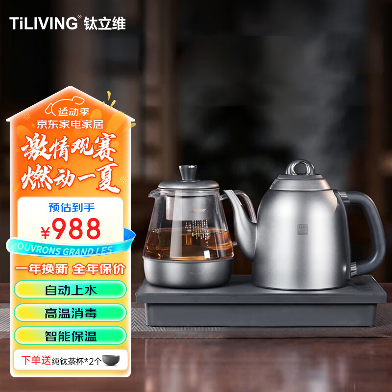 TILIVING(钛立维)纯钛全自动上水壶茶台烧水壶电热水壶电茶炉煮茶器套装嵌入式一体机茶盘电水壶茶壶价格:988.00元!