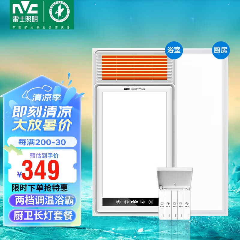雷士(NVC)风暖浴霸基础款双电机大功率速热取暖器浴室暖风机厨卫面板灯套餐价格:439.00元!