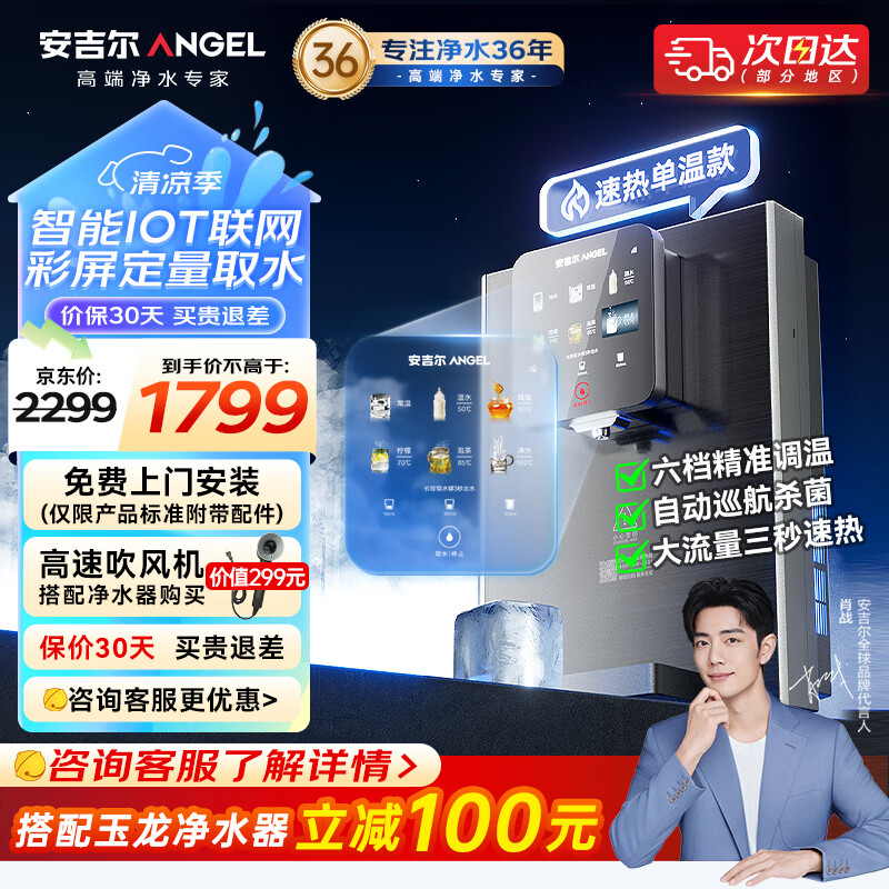 安吉尔【肖战代言】净水器家用超薄管线机壁挂式双温加热直饮一体饮水机智能触控LED屏温热款Y3511BK-G价格:1799.00元!